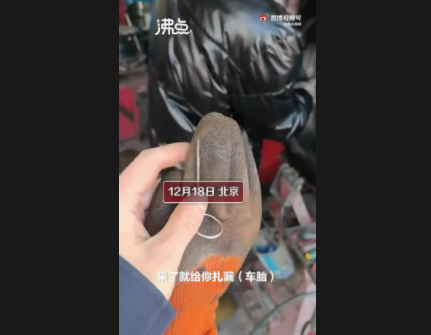 12月18日,北京。有网友爆料称在朝阳区一家汽车维修中心修补轮胎时,自己的轮胎原本只有一个破洞,维修人员却说是2个破洞。最后发现维修人员手套里藏了一根铁针,故意把车多扎了一个洞。19日,店长回应补胎时扎破轮胎多收费称,修补轮胎业务是外包,目前已收回,正在找涉事人员,警方也已介入调查。