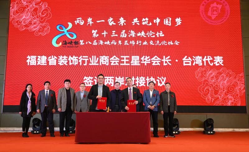 12月22日,由福建省工商业联合会(总商会)、福建省台湾同胞联谊会共同主办,福建省装饰行业商会、台湾室内设计装修商业同业公会联合会、台中市台中建筑师公会及台湾防火绿建材装修学会共同承办的第十三届海峡论坛——第八届海峡两岸装饰业交流论坛系列活动在福州举行。两岸同胞相约八闽,畅叙乡情,切磋技艺,洽谈合作。