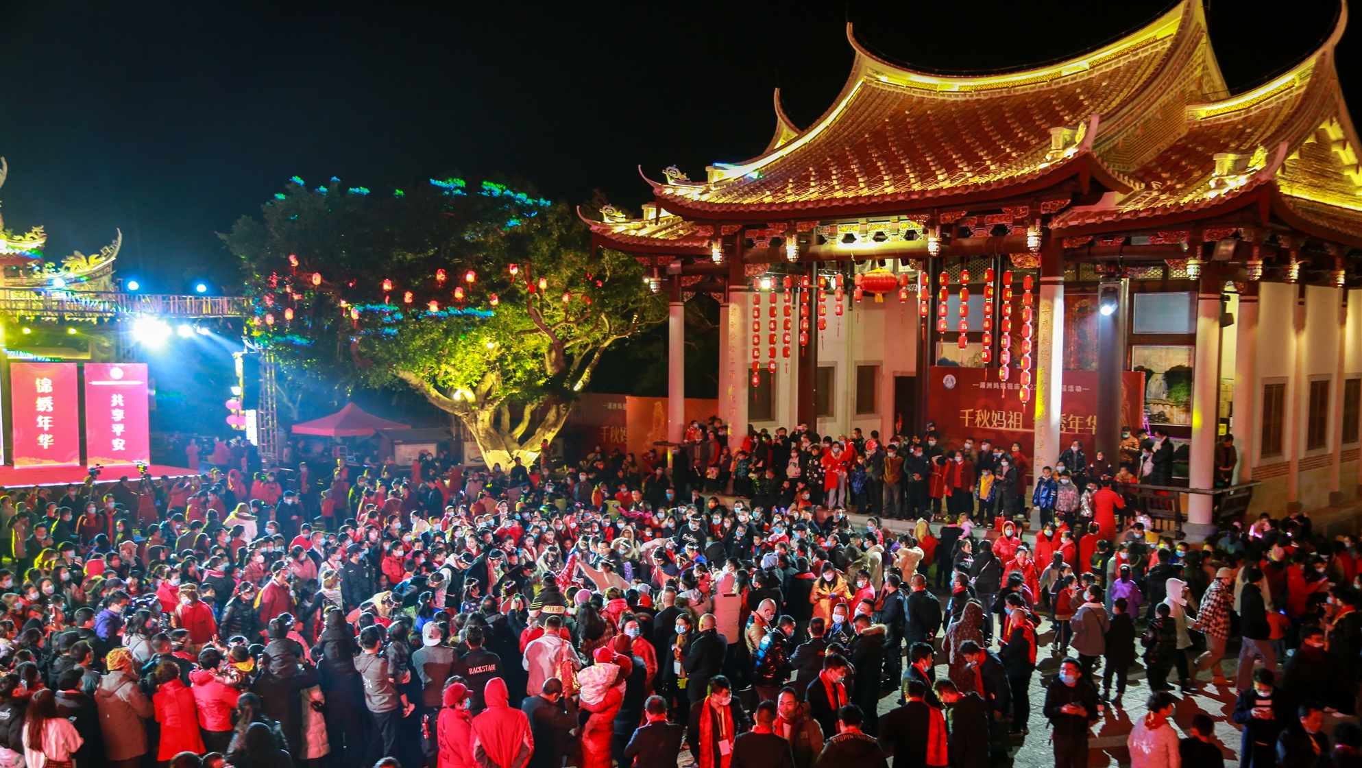 当晚8时,湄洲妈祖祖庙2022年新年联欢晚会在万众期待下准时举行。相较往年,今年的晚会地点由妈祖大学堂移至圣旨门广场。晚会以“千秋妈祖·锦绣年华”为主题,以1960年之后的各个年代青春印记为轴,分为春华秋实、不负韶华、风华正茂、锦绣年华四个篇章,形式多样,内容丰富。