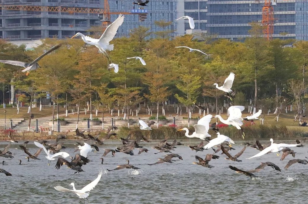 据悉,福建省林业调查规划院曾对厦门杏林湾国家城市湿地公园(厦门园博苑)水鸟进行调查,近两年来共调查到16种13179只水鸟。其中数量较多的是普通鸬鹚,最多观测到11000只,还有数量不等的白鹭、苍鹭、池鹭、夜鹭、红嘴鸥等各种鸟类。