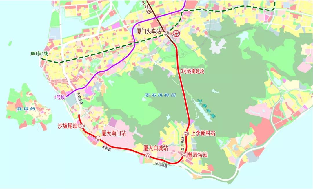3号线南延段全长8.5km,为既有3号线(火车站至蔡厝段)的延伸线。该线路起于沙坡尾站、止于厦门火车站,设有沙坡尾站、厦大南门站、厦大白城站、曾厝垵站、上李新村站等5座车站,沿线覆盖世贸商业圈、辐射厦港和曾厝垵片区优质旅游资源带及生活区,建成后将发挥缓解厦门本岛西南沿岸旅游、通勤交通压力的重要作用。