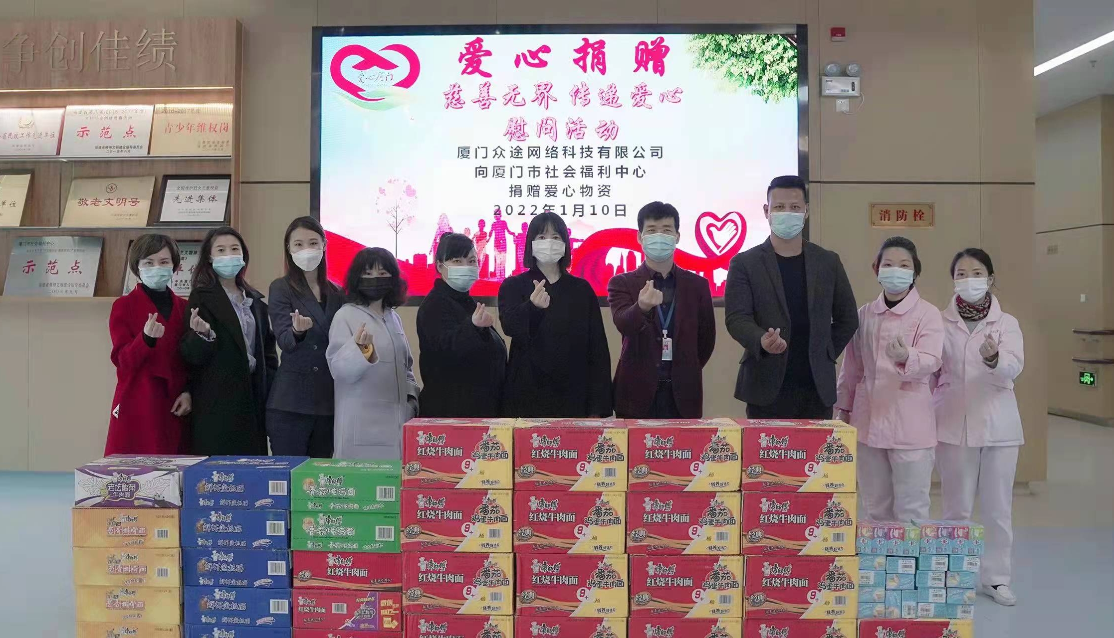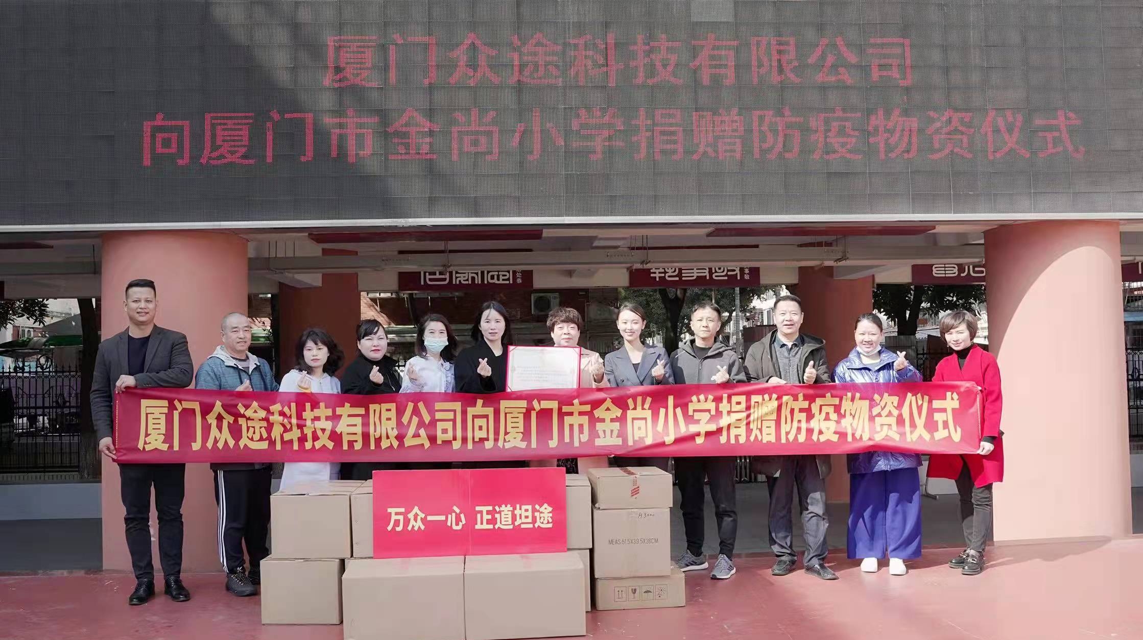福建日报·新福建客户端1月10日讯(记者 吴在平 通讯员 方来鑫)1月10日,厦门众途网络科技有限公司创始人李明珍携手企业高管一行,到厦门市乌石浦小学、厦门市金尚小学、厦门市湖里区第二实验幼儿园、厦门市社会福利中心开展爱心捐赠活动,捐赠了一批防疫物资、食品等,受到欢迎与赞扬。