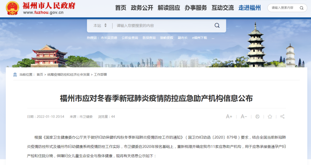 日前,根据《国家卫生健康委办公厅关于做好妇幼保健机构秋冬季新冠肺炎疫情防控工作的通知》要求,结合全国当前新冠肺炎疫情防控形式及福州市妇幼健康系统疫情防控工作实际,福州市卫健委重新梳理并确定我市11家应急助产机构,用于应急承接普通孕产妇产检和住院分娩,保障妇女儿童生命安全与身体健康。
