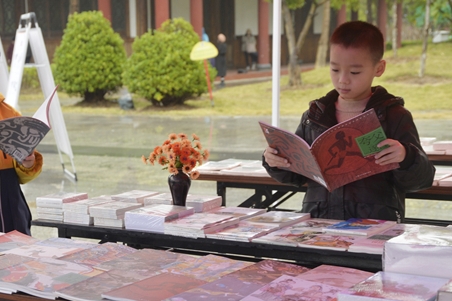 现场展销的一些精品读物吸引小读者。福州日报记者 郑帅摄