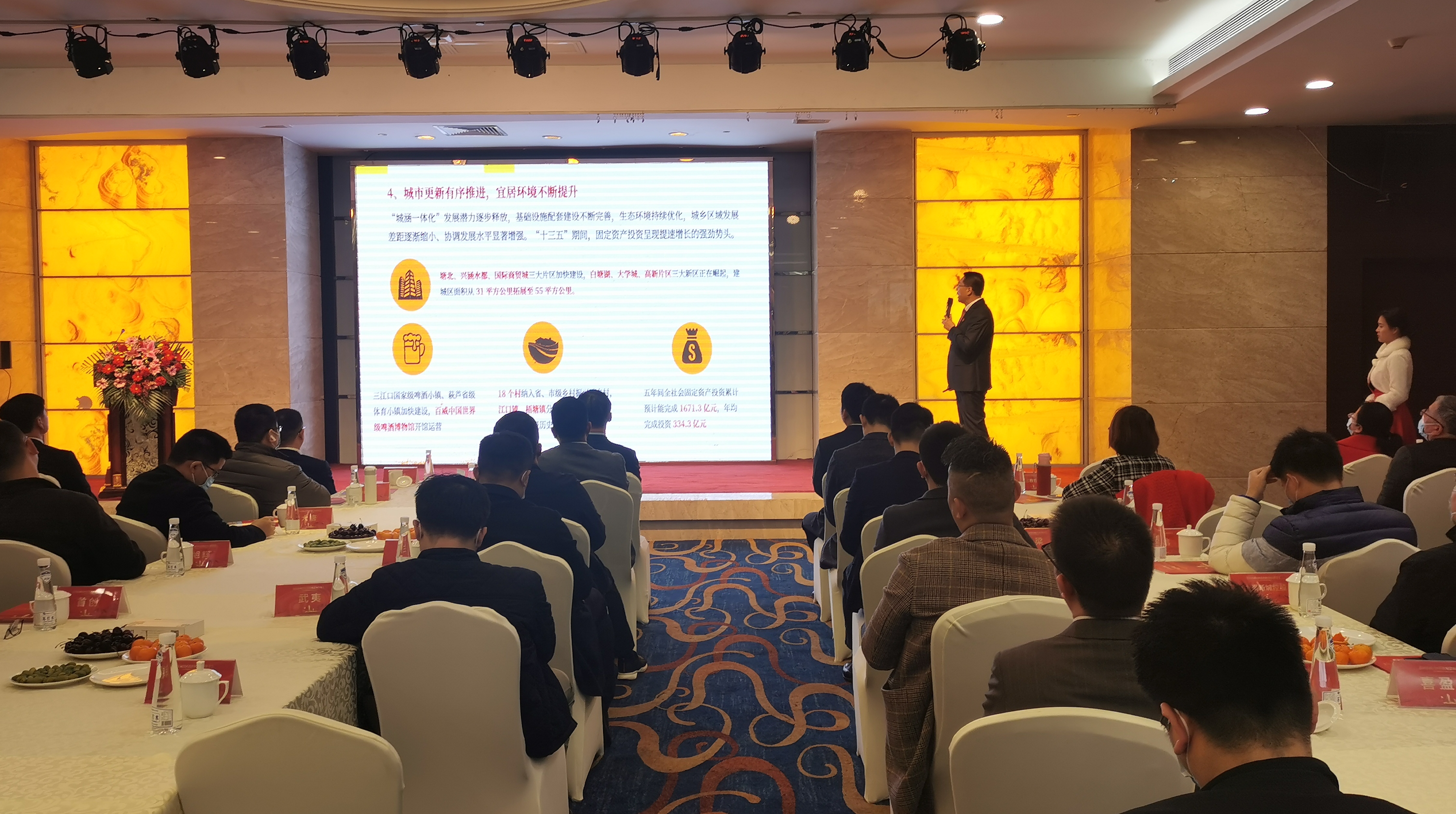 涵江区副区长郭孙涵向参会人员表示热烈欢迎和衷心感谢,倾情介绍涵江的人文历史、发展现状和未来规划。当下,新一届涵江区委、区政府正牢牢把握省十一次党代会“新时代山海协作”的大好时机,紧紧围绕“现代产业强区、生态宜居涵江”宏伟蓝图,把产业升级与城市开发全面融入福州大都市圈的建设大局,进一步挖掘释放区位优势、产业优势和生态优势,坚定不移朝着港城融合、城乡一体、环湾发展的新征程大步迈进、全力以赴。