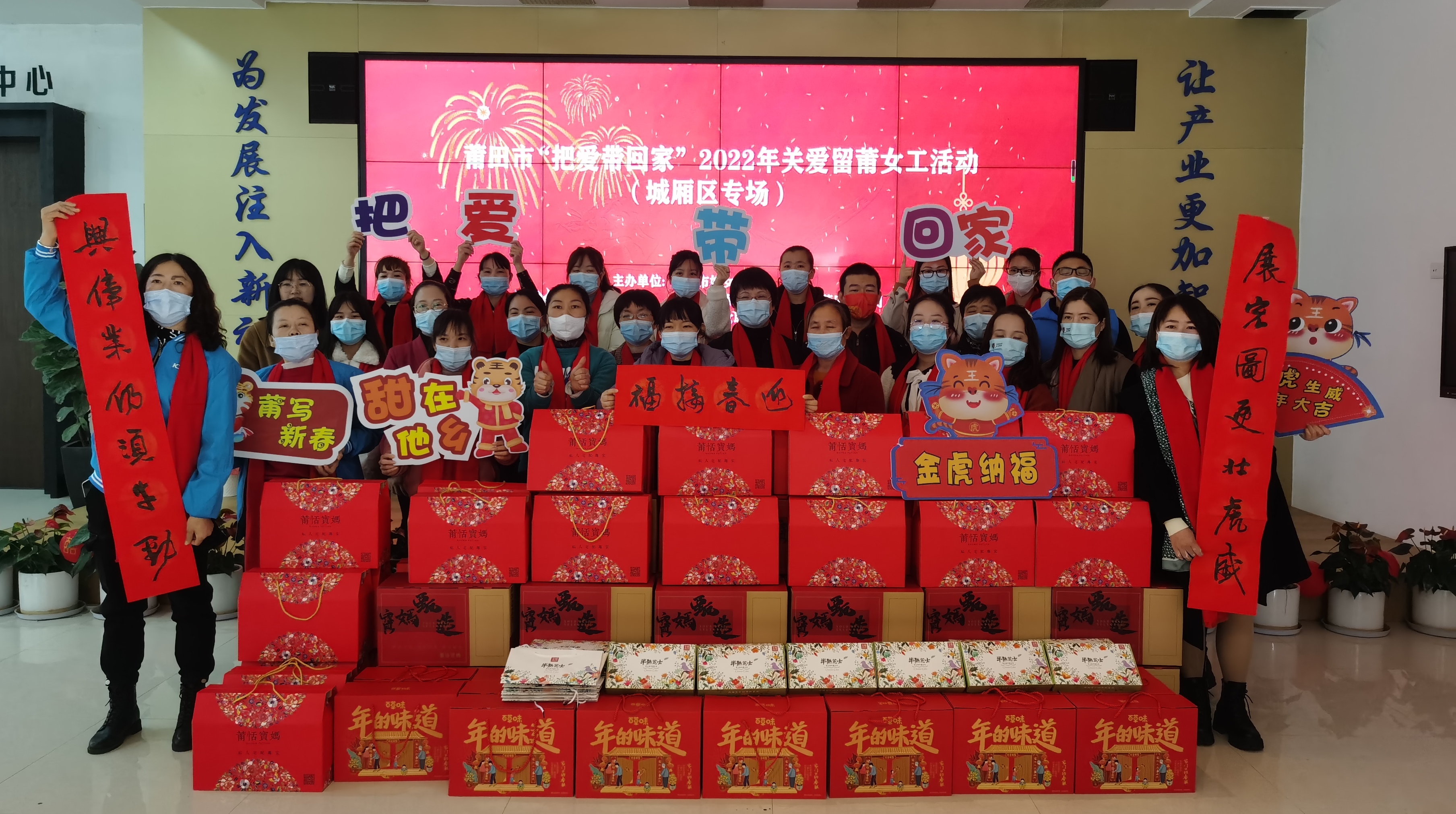 活动伊始,莆田市妇联副主席郑丽萍作《家庭教育促进法》宣讲,并与留莆女工代表一起写福字,祝福大家新的一年福气满满、好运连连。“虽然留在异乡过年,但政府的关怀绝不会少,希望通过此次关爱活动,让你们感受莆田这座城市的温暖,过个甜甜的春节。”郑丽萍说。