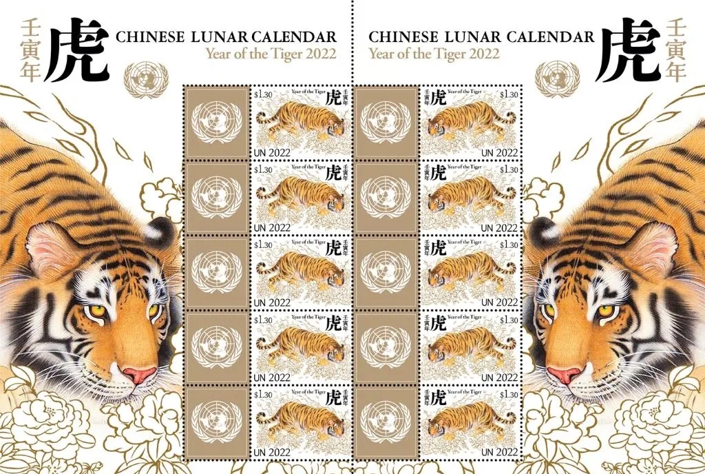 1月21日,联合国邮政管理局在纽约发行中国农历壬寅虎年特别版邮票版张,庆祝中国农历新年的到来。