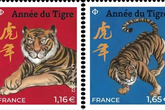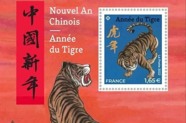 2022年1月22日,法国邮政发行了一套2枚农历生肖虎年邮票。