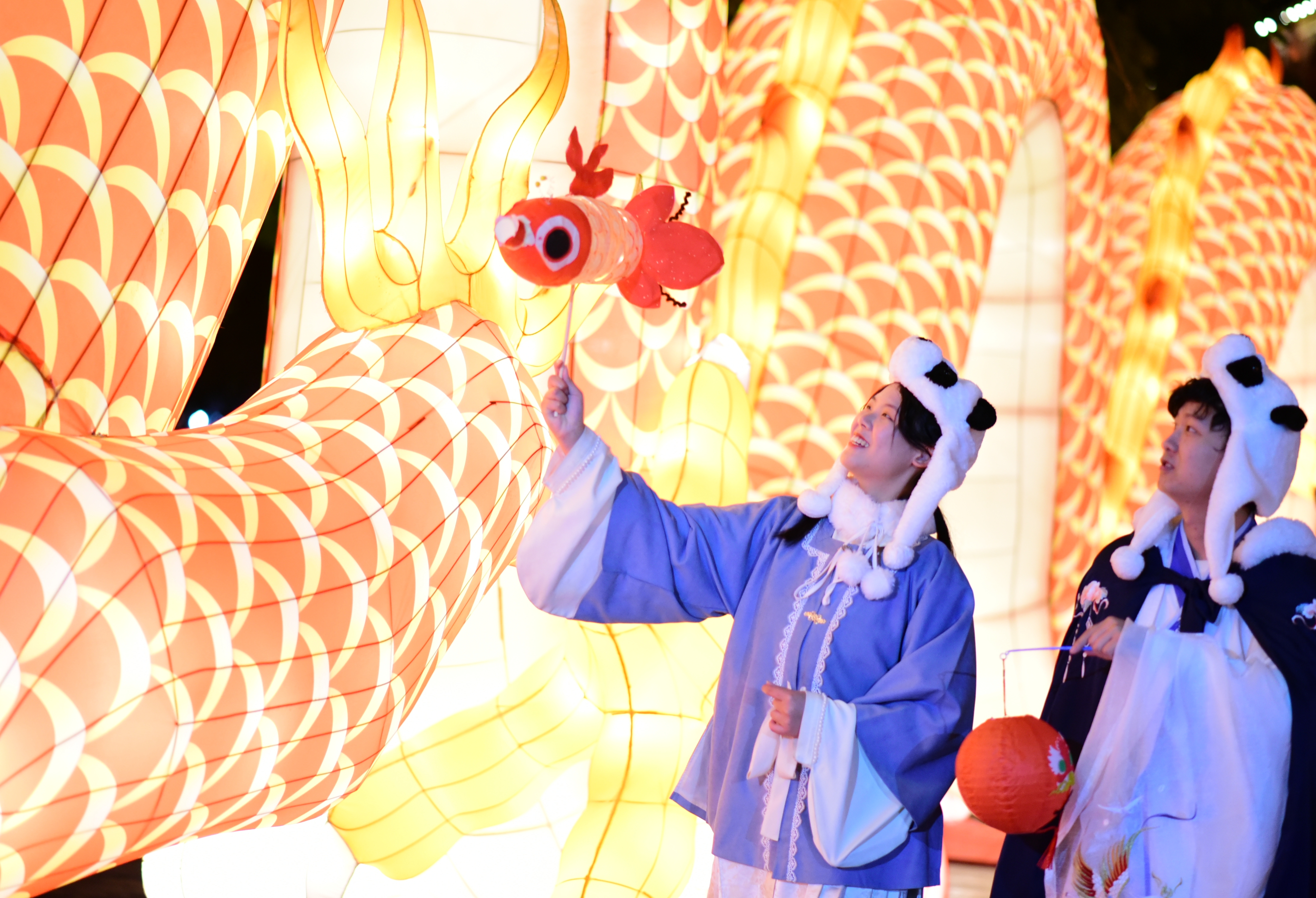 主办方介绍,本次灯会将持续至2月15日(农历正月十五)。灯会上,还有不少市民游客特意穿着汉服前来打卡,与方特东方神画的传统风交相辉映,带来满满“穿越感”。“春节假期我想带家里的孩子们也来这里了解中华传统文化、拍照打卡。”老家在河南的游客吴女士说,今年春节,他们也打算留在厦门过年,自己已经提前做好了春节“计划表”,一定能过个精彩年。
