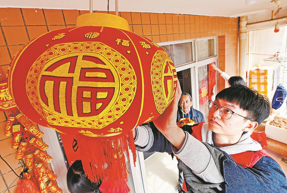 近日,泉州市泉港区后龙镇组织社区工作者和志愿者,对辖区267户低保户等困难群众逐户慰问,并帮他们挂红灯笼、贴春联,迎接新年的到来。林弘梫 摄