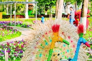 2月1日—15日,“新春大地花卉展”将分别在空明桥花田和海洋岛惊艳亮相,同时举办以“七彩田园”为主题的草雕艺术展,精选23组草雕,有人物、动物、蔬菜、水果等造型。空明桥花田种植了混色金鱼草、黑眼苏珊等。花海中的葫芦造型草雕与“福禄”谐音,谷仓、瓜果蔬菜等草雕传递了五谷丰登的喜悦。海洋岛上有油菜花、大红色虞美人,以及紫罗兰和毛地黄等花卉。草雕展示了农耕人民劳作场景,还有吉祥虎、南瓜屋、酒坛、可爱娃娃、蜗牛、长颈鹿、孔雀等造型。