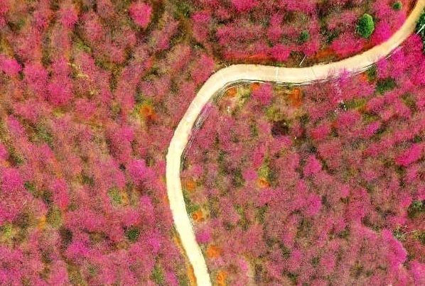 盈暖春期,正是樱花烂漫时。在福建省漳州市华安县华丰镇上雪新村黄竹垵山坡上,连片牡丹樱花树竞相开放,随着山坡蜿蜒,美不胜收,吸引众多游客前来打卡观赏、拍照留念。