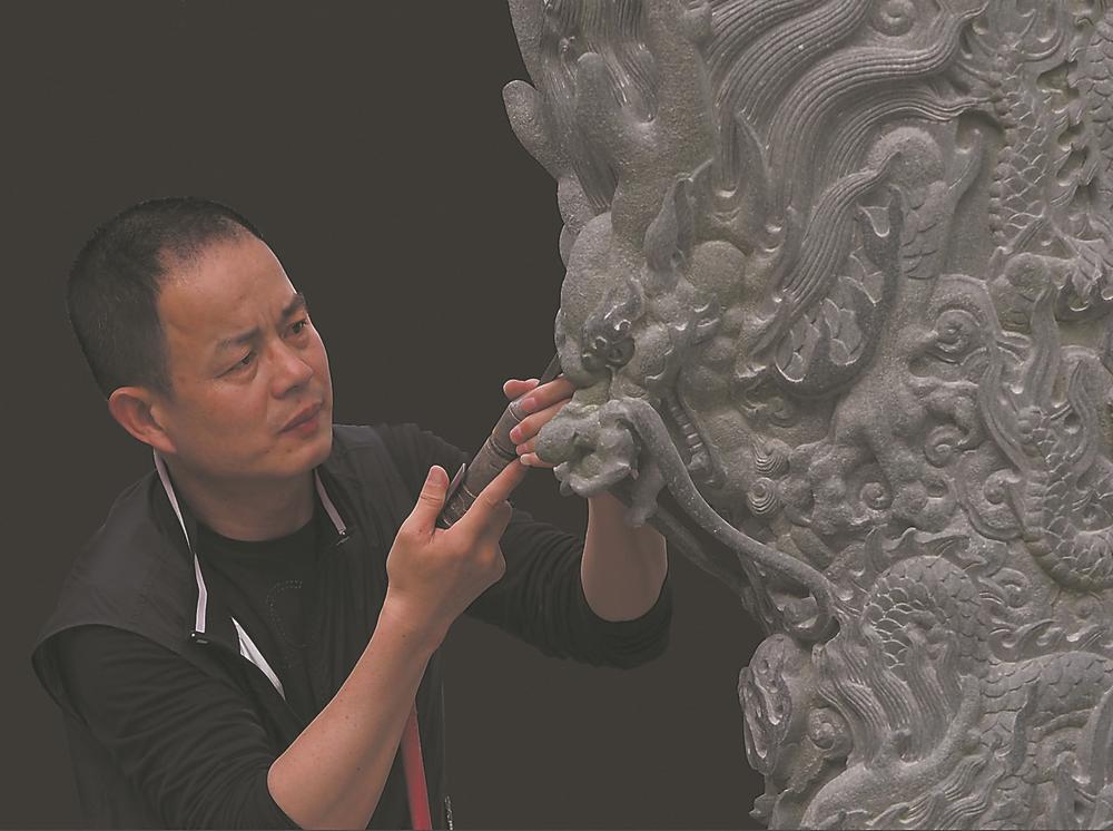 1986年,他师从闽南石雕名匠蒋智锦学习石雕工艺,经过3年多磨炼,逐渐熟悉了各种雕刻工具的应用,对艺术主题、材料选择、雕刻手法、人物比例和图纸设计也有了自己的见解。“我平时爱琢磨,对传统石雕的浮雕、镂空雕和圆雕等技艺特别感兴趣,还痴迷于石雕艺术创作设计。”吴德强说。