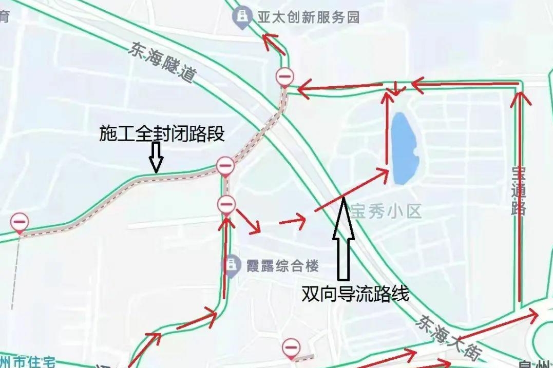 交警介绍,2022年3月3日(周四)00:00开始对昌盛路整段实行全封闭施工后,请往来通港西街至东宝花苑方向车辆由通港西街——宝秀小区内部道路或生态路——东宝花苑绕行。