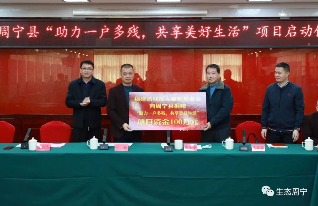 仪式上,省残疾人福利基金会向周宁县捐赠“助力一户多残、共享美好生活”项目补助资金100万元,对居家环境和生活设施存在突出困难和问题的家庭进行帮扶,改善周宁县“一户多残”中低保户残疾人家庭居家环境和生活条件。