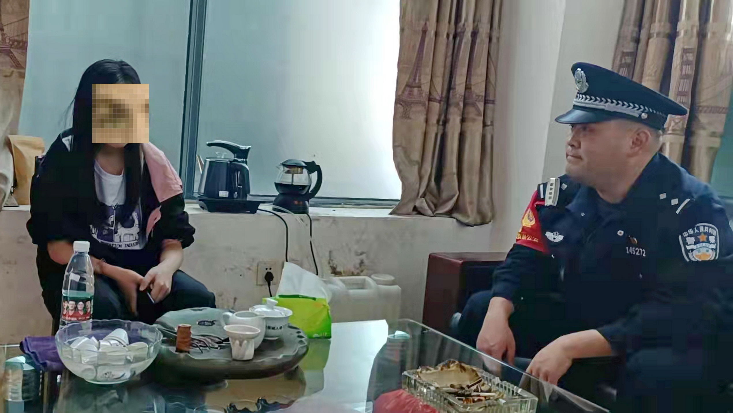 陈相睿一边给小丽送来了一些饮料和零食,一边与她慢慢交谈,让她渐渐放下心中的包袱,打开了心扉。原来,小丽的父母亲离异,而父亲又在厦门打工,平常生活都是和爷爷在一起,当天因学习问题爷爷说了她几句,她觉得很委屈,想要离家出走,遂从学校跑出来偷偷到火车站购买火车票去找网友。