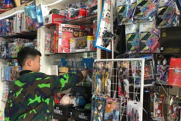 3月2日下午4时许,麦顶小学的放学铃声响过后,孩子们陆陆续续涌入校门附近刘晨的文具店。刘晨说,最受欢迎的是店门口的奥特曼玩具区,从几块钱的动漫卡片到上百元的玩具,都有孩子买。“50元一盒的正版奥特曼卡片,一个月可以卖出二三十盒。”
