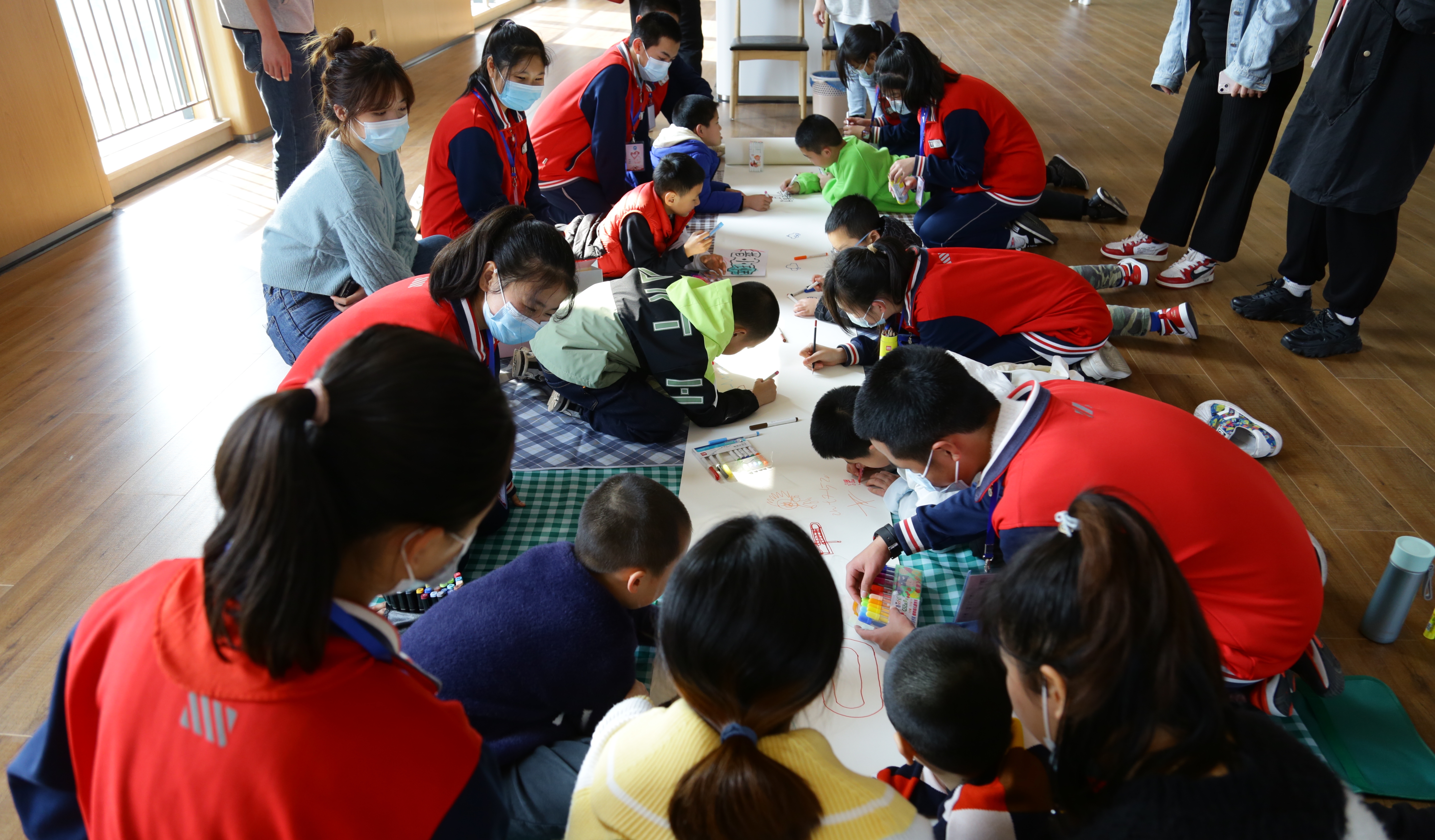 彩虹伞游戏、校园环保小卫士活动……现场气氛活跃,莆田市外国语学校和瑞仕国际潜力少年中心的学生面带笑容,有的手持画笔和塑料剪刀,自由创作,有的载歌载舞,表演文艺节目,尽情享受欢乐的时光。