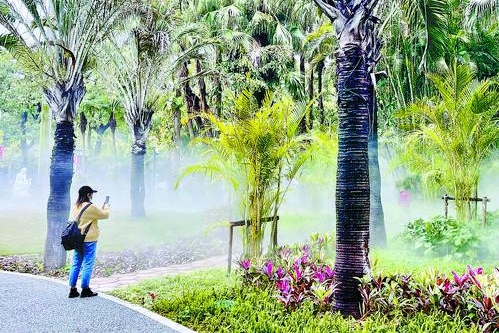 中山公园增加互动雾森系统,吸引市民驻足“打卡”。