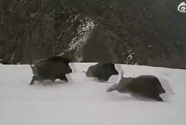 近日,新疆温宿托木尔峰国家级自然保护区内的红外相机视频中,首次拍到狼和野猪互相追逐的影像画面。视频中,野猪群凶猛地追着狼到处跑。随着当地天然林保护修复、重要物种栖息地保护和关键环境保护修复工程取得实效,有效保障野生动物栖息,野猪、北山羊、雪豹、狼等野生动物数量和种群不断增加。