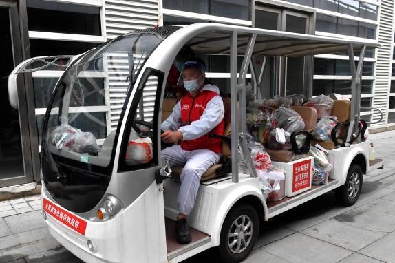 “一车大概装有200单的商品,把这些订单交接给身处对面疫区的同事,同事会将商品配送到订单所在的小区。”谢贻煌表示,目前,在一线工作的同事有将近100人,都在努力为福州的抗疫工作出一份力。