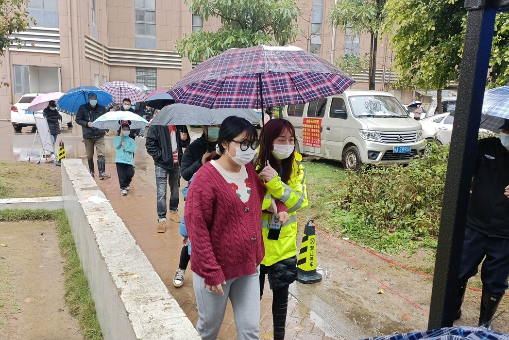 “这边有位孕妇,请大家让她先做好吗?”在两园安置房临时采样点,一群身穿黄马甲的身影格外引人注目,他们是福建星光救援队的队员。队员黄琴一边撑着伞,一边扶着一位大肚子的女士穿过人群,完成采样后又将她送回了家。当天星光救援队17名队员在此集结,作为志愿者协助现场维持秩序,帮助有困难的群众。