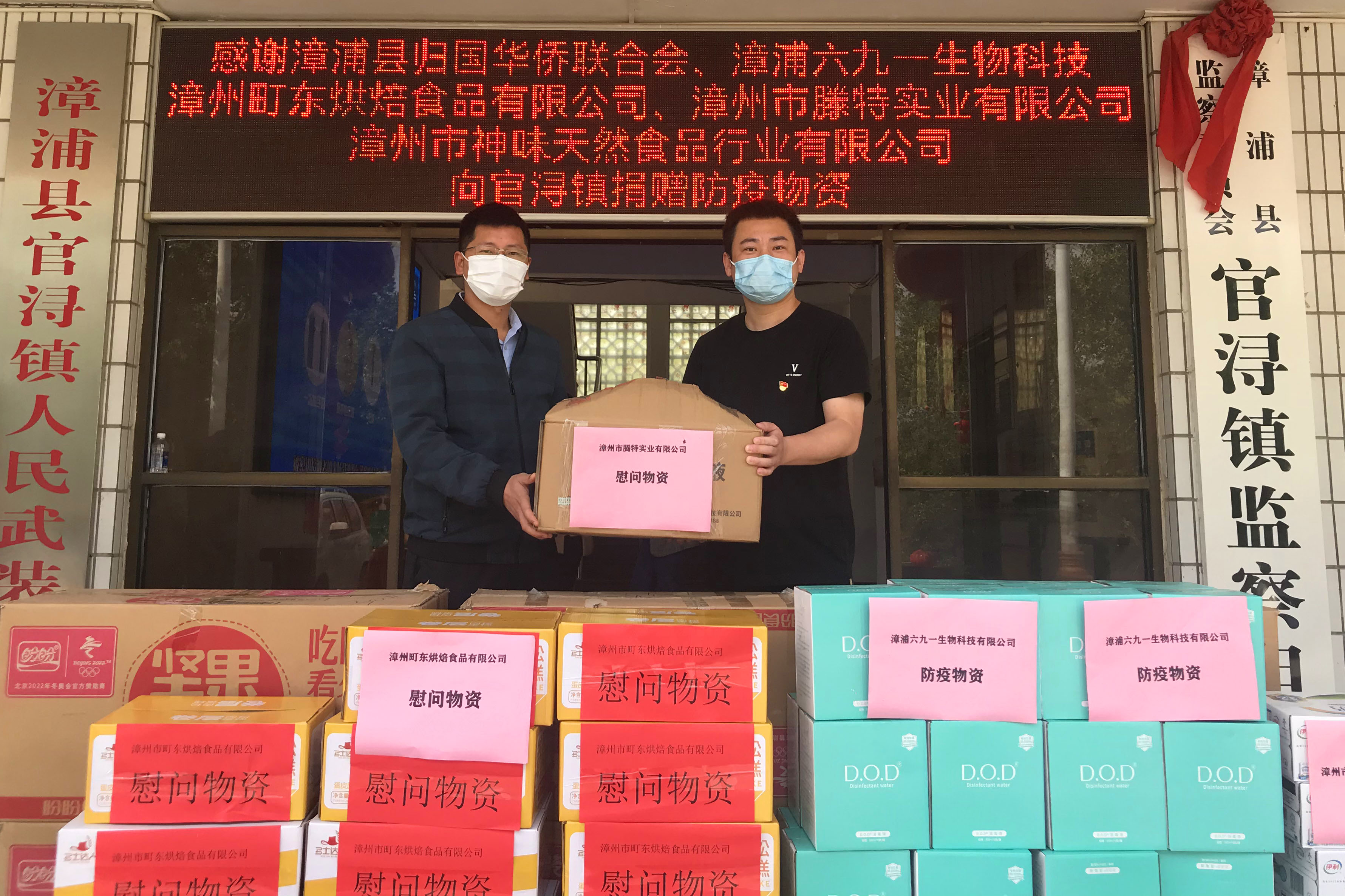 福建日报-新福建客户端3月31日讯(李佳昕)3月31日上午,在漳浦县侨联倡议发动下,漳浦六九一生物科技公司、漳州町东烘焙食品有限公司、漳州市腾特实业有限公司、漳州市神味天然食品工业有限公司等爱心企业家带着牛奶,蛋糕等食品和消毒液,来到官浔镇看望慰问抗疫一线的工作人员。