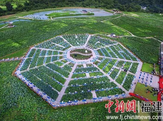 图为瑜伽爱好者在千亩莲田花海里表演瑜伽