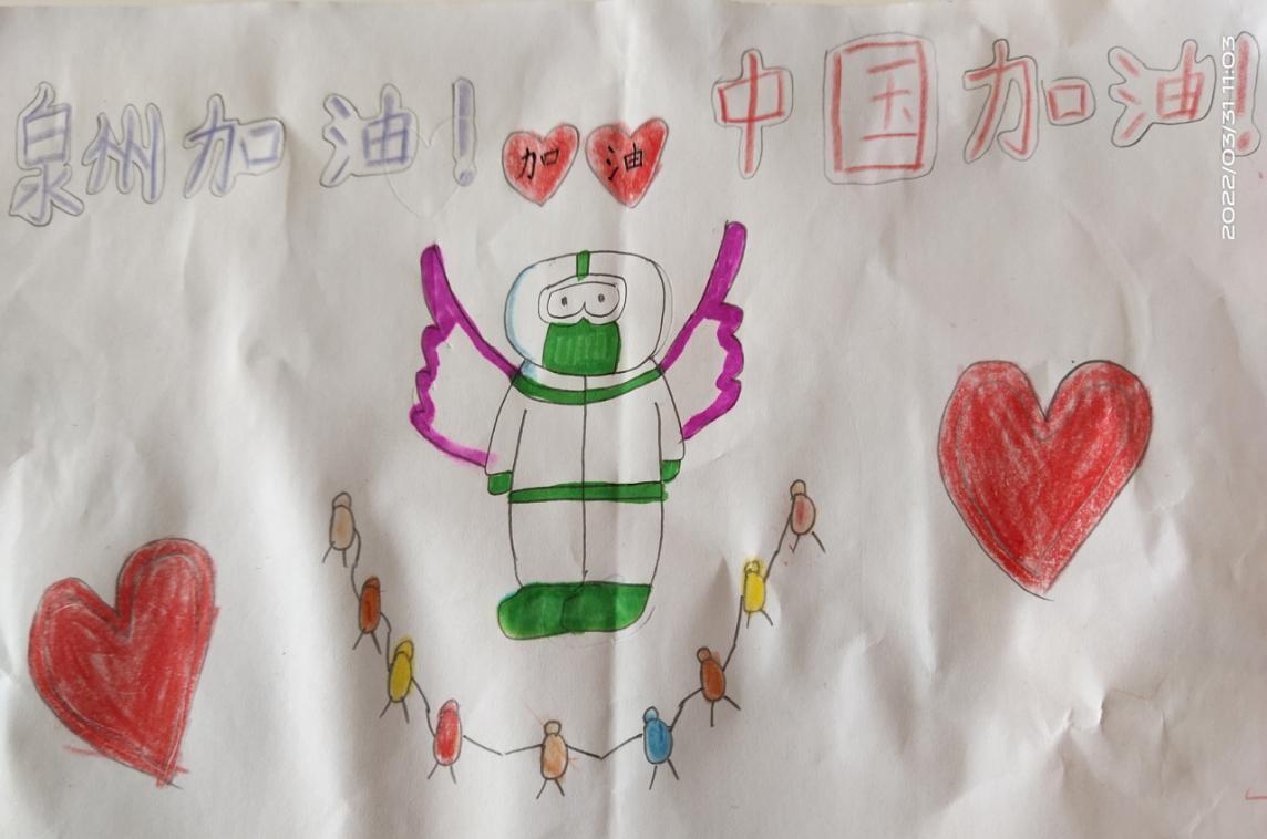 3月31日早上,在柏景湾采样点有一位小朋友给我们组送来了自己的作画,表达了自己的美好期望!