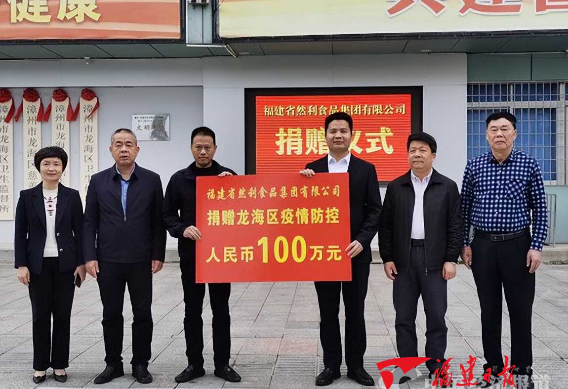 福建日报·新福建客户端4月7日讯 近日,新冠疫情又再次卷土重来,漳州市也没能独善其身。福建省然利食品集团有限公司一方面全力做好企业内部疫情防控,全员参与,积极投身于疫情防控工作;另一方面心系家乡,密切关注疫情动态,主动对接政府相关部门,决定捐赠人民币100万元整,用于支持龙海新冠疫情防控指挥部工作,火速支援龙海抗疫一线。