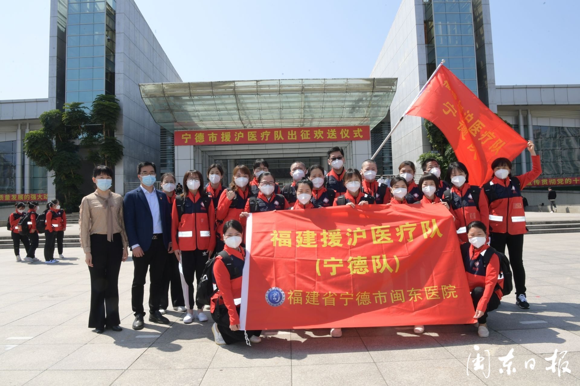 4月7日上午,宁德市援沪医疗队逆行出征。