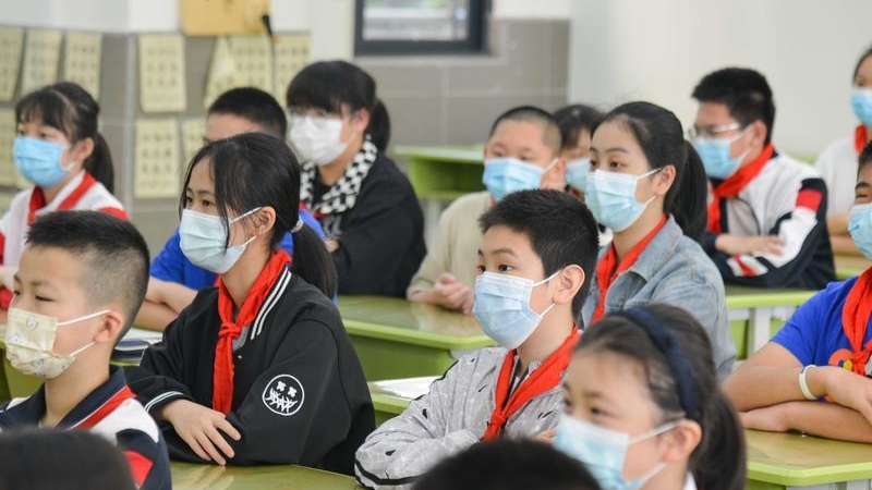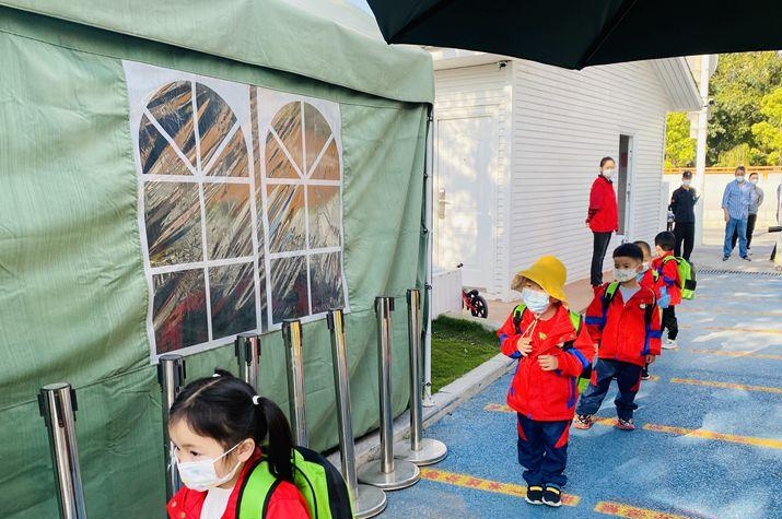 按“疫情”防控要求,不开展,集体升国旗仪式,经过的学生向国旗行注目礼或行礼。福建日报记者 游庆辉 摄