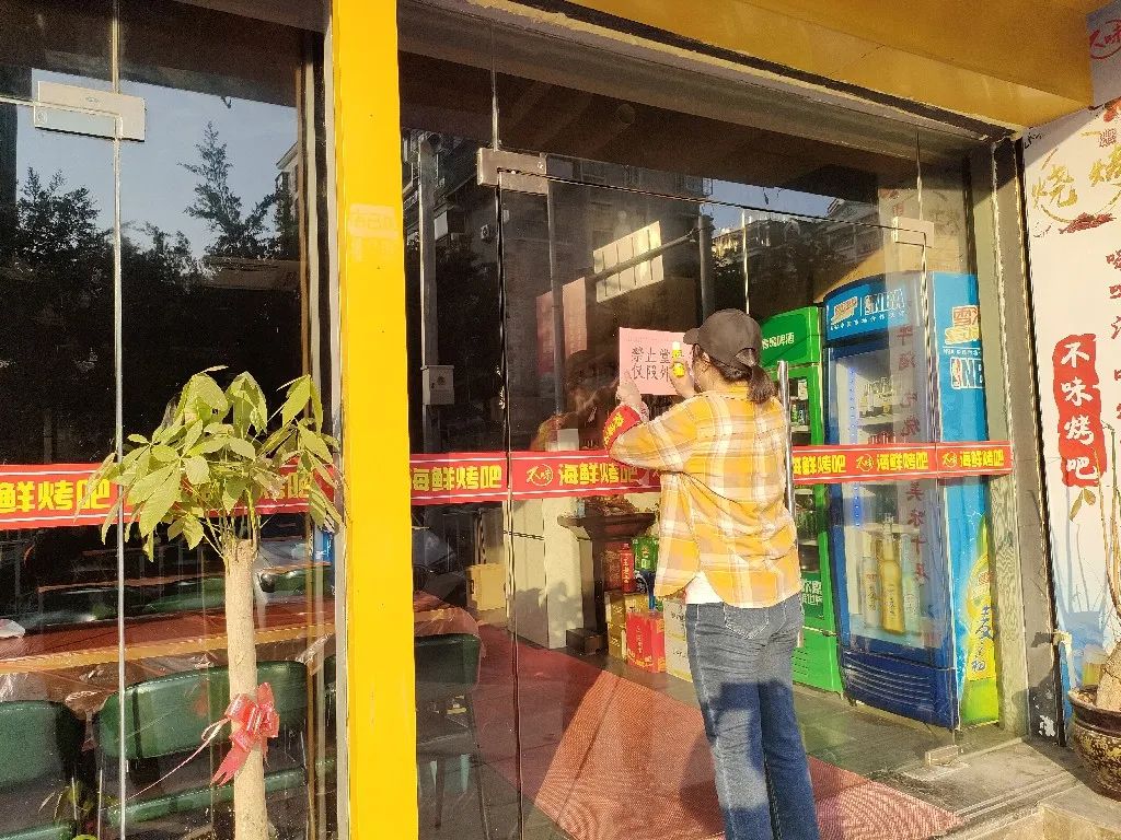 “禁止堂食,只限外卖”,在东侨一家餐饮店门口,记者看到,东侨市场监督管理局的工作人员正在餐饮店门口粘贴“禁止堂食,只限外卖”的宣传单,并对餐饮店老板进行沟通工作,严格落实疫情防控下餐饮店禁止堂食,可提供无接触配送服务。