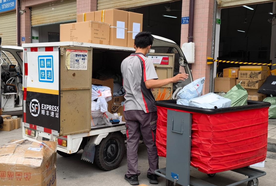 那么,目前快递的寄收情况如何?今天11时30分左右,记者来到了泉州顺丰运输有限公司金龙营业点,门口四五辆快递车并排停放,其中几辆车的车厢内已装满快件。走入门店内,七八名工作人员戴着口罩正在忙碌,有的在搬运货物、有的在包装快件,有的在分拣快件,分工明确,各司其职。该营业点负责人介绍,目前该营业点已实现全员复工,之前滞留的快件基本派送完成。