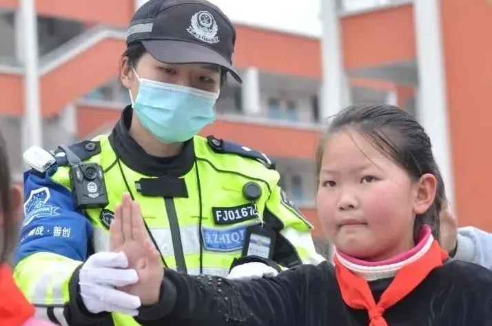 2月—3月她们分别走进辖区实验小学、第二实验小学、东区小学、鳌阳小学教授交通指挥手势操