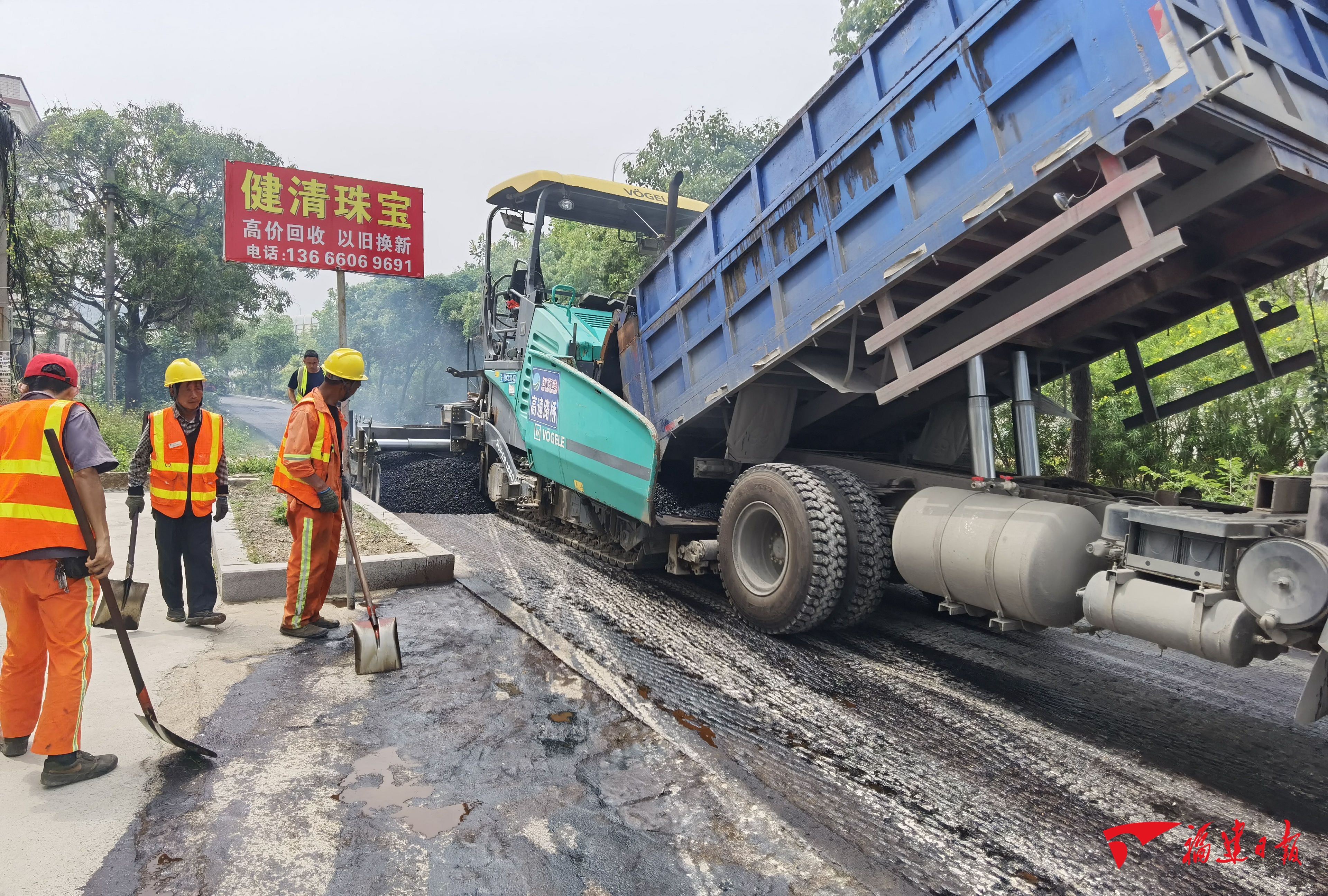 福建日报·新福建客户端5月4日讯(洪骏 文图)4月30日,“五一”假期首日,龙海东园镇现代农业示范区道路“白改黑”项目A段工地上“热气腾腾”,沥青摊铺机与工人师傅密切配合,大型压路机后头紧跟来回碾压新铺的沥清路面,该民生项目的快速推进,引来沿线村民纷纷点赞。