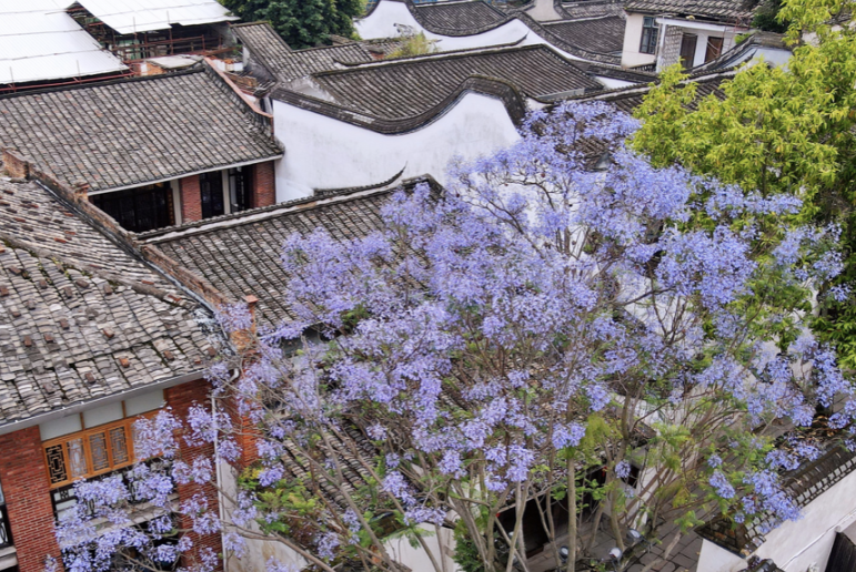 在上个世纪70年代,那时福州还不时兴送玫瑰,男孩会把落在地上的蓝花楹花朵,串成一个花环送给恋人。因此,蓝花楹的花朵又有“福州玫瑰”的美称。