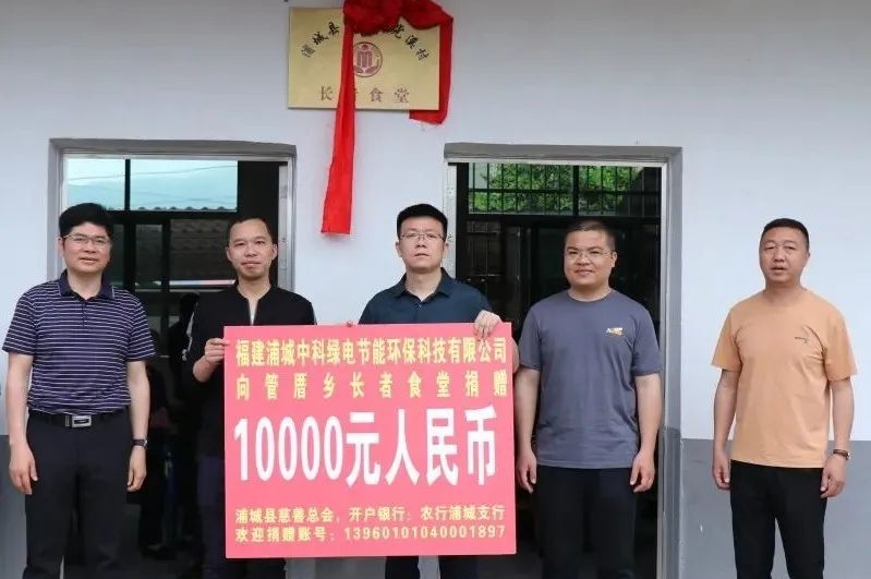 ▲福建浦城中科绿电节能环保科技有限公司为长者食堂捐赠1万元人民币