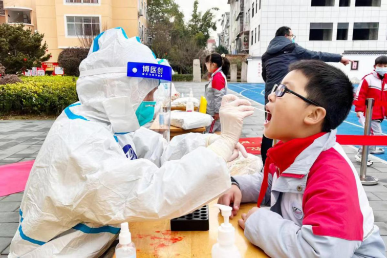 医务人员为学生核酸采样