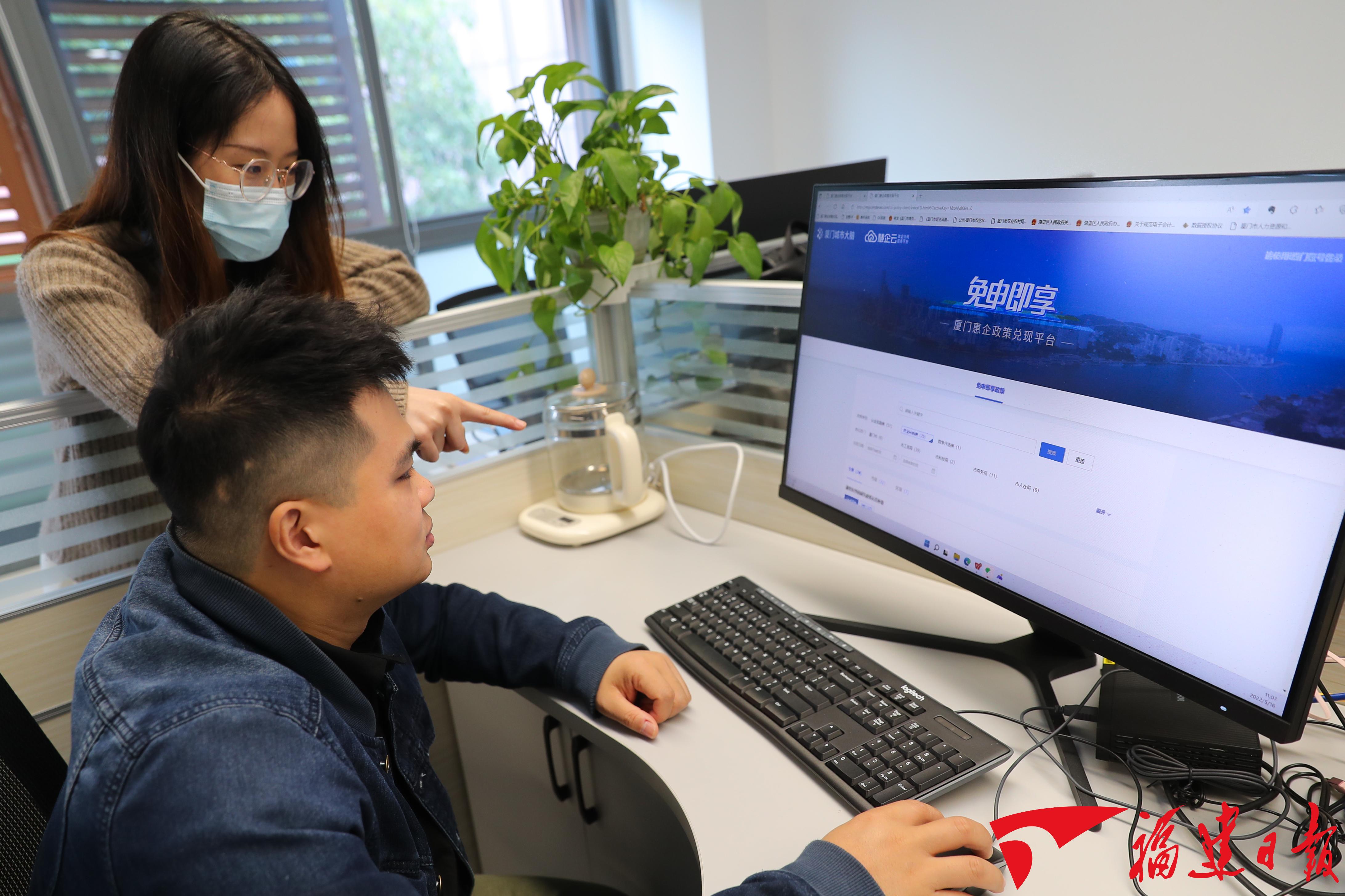 城市大脑工作人员正在审核已上线“免申即享惠企政策兑现平台”的政策。施辰静 摄