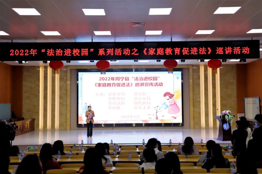 5月23日,由县教育局、县法院、县检察院、县公安局、县司法局、县民政局、县妇联和县关工委等8家单位共同举办的2022年“法治进校园”系列活动之《家庭教育促进法》巡讲活动在县实验小学西校区举办。