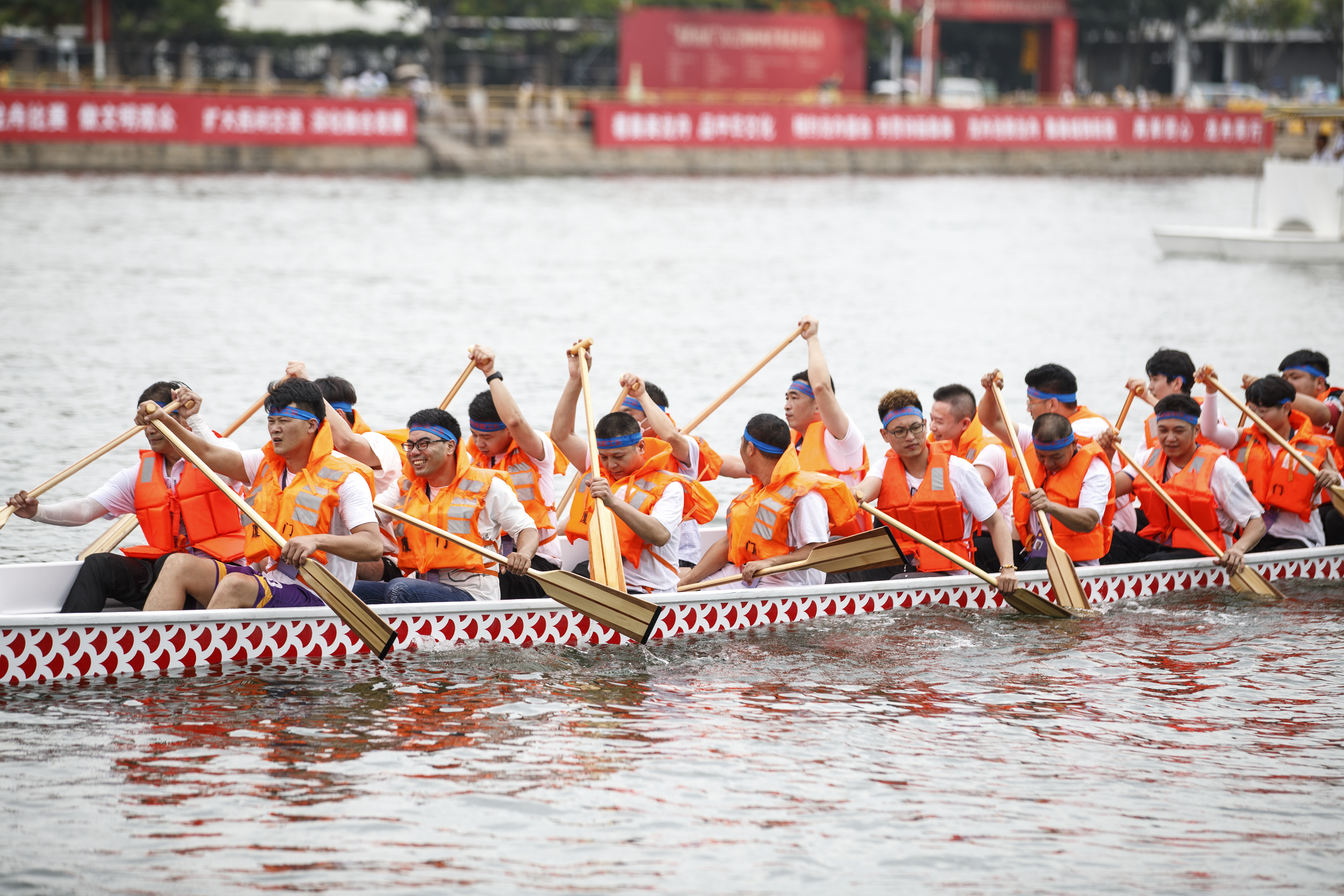 “正式比赛前,我们几乎每天都在训练。”他说,在训练中,两岸青年偶尔也会出现一些不同的看法,就连协调动作的口号也经历了“来呀去呀”到“一二一”的取舍。此外,来自台湾的鼓手,在发号施令、控制队伍节奏时,有时也需要掌握好语调语气。所幸,在一个多月的训练过程中,大家多次模仿持桨和练习,最终能够整齐划一地完成动作。