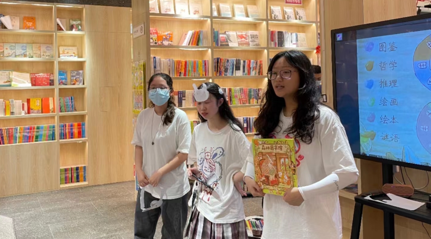 来自12个二级学院、21个不同专业的30名大学生选修了该课程。据了解,此次同学们为绘本说故事分组设计6场说故事活动,当天是第一场。在经过近两周的准备后,当天,大学生们在活动现场结合角色卡和故事配乐,为小朋友们讲述绘本《森林图书馆》。之后,大学生们又结合故事情节带着孩子们进行想象创作,穿插游戏环节,通过电视屏幕展示图书分类指示牌,让他们学会如何看懂图书索引快速找书。