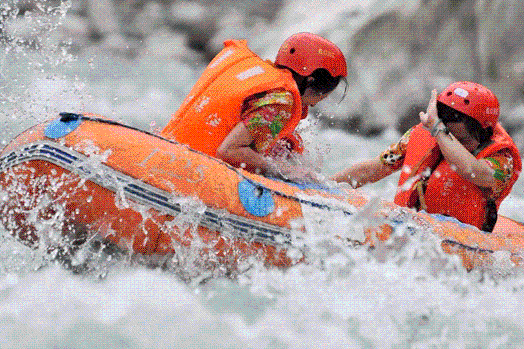 听竹筏工歌声阵阵、抚一手溪水潺潺