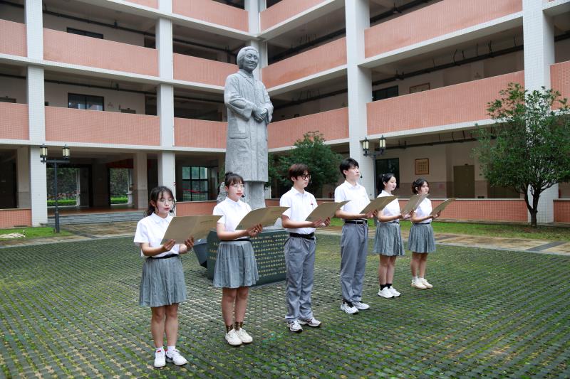 揭幕仪式上,学院党委书记林忠与院长沈国星共同为林巧稚雕像揭幕,学生们用深情的朗诵《敬畏生命 守护生命》致敬“万婴之母”林巧稚。