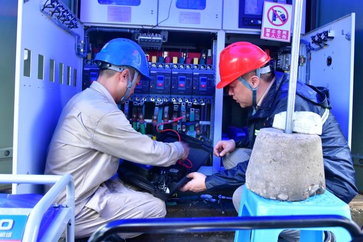 供电抢修人员正在对环网柜进行烘干工作 蔡政 摄