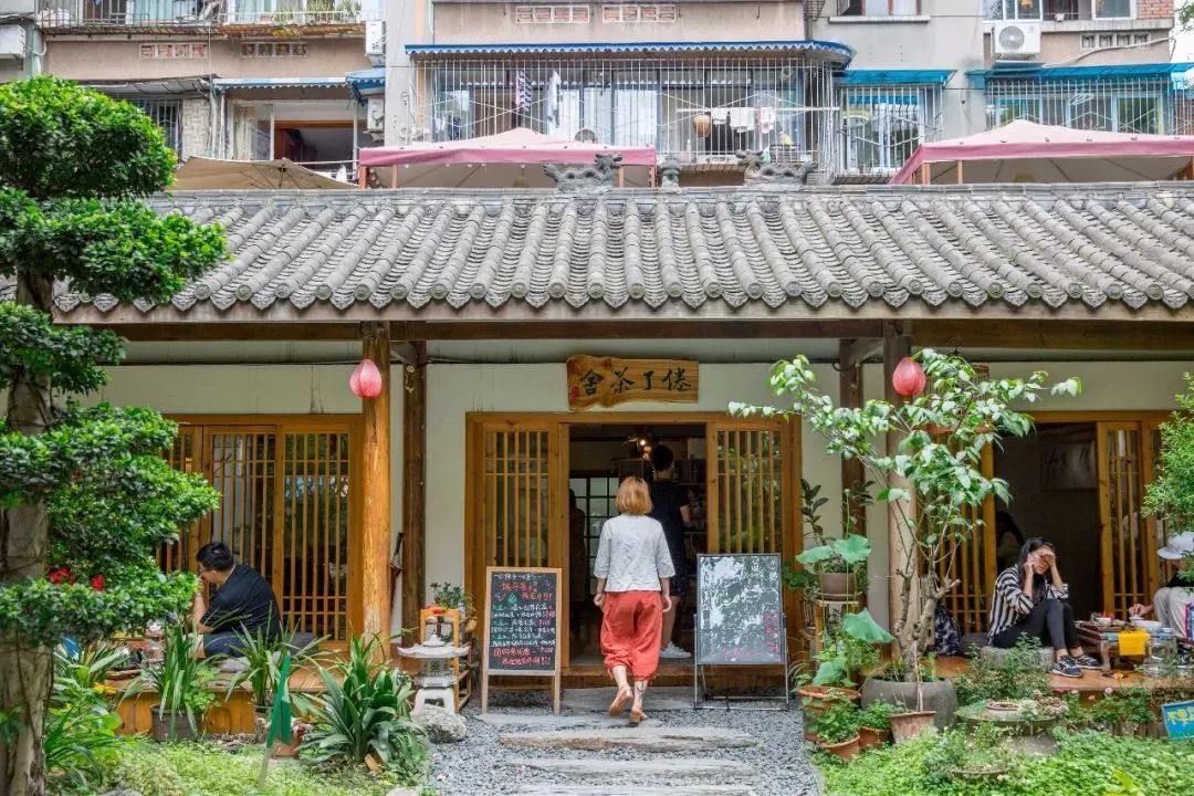 在几栋六七层的楼房包围下,有个近200平方米的院子,这个院子便是倦了茶舍。