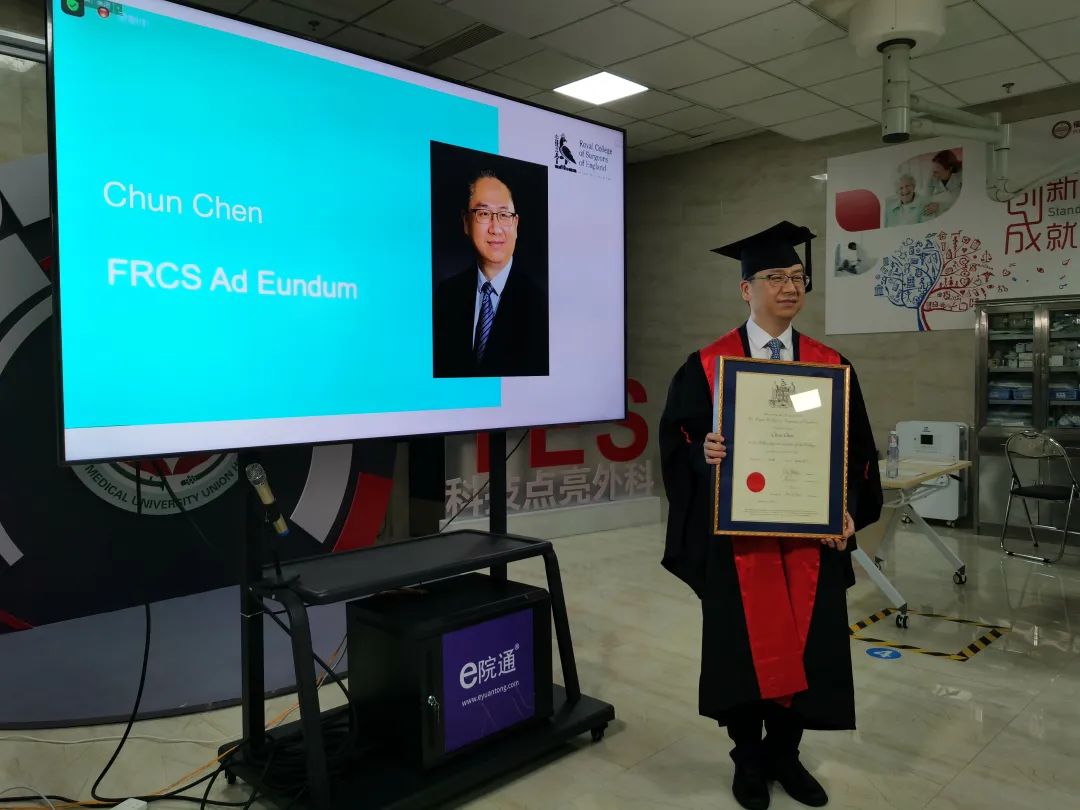 7月6日晚,在福建医科大学附属协和医院微创外科培训中心,福建医科大学附属协和医院副院长、胸外科主任陈椿教授通过线上的方式,接受了英格兰皇家外科学院授予的英格兰皇家外科学院院士证书。英格兰皇家外科学院是现代外科的发源地之一,院士称号是英格兰皇家外科学院对外科医师的最高肯定。