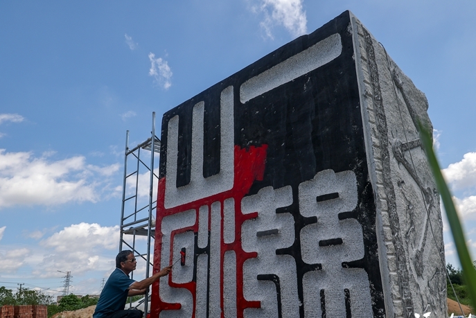 时隔22年,安放在闽江公园北园的“世纪巨印”有了姊妹篇!记者10日获悉,福州市著名书法篆刻家邓定剑正在加紧创作全国最大的花岗岩原石巨印——“山河一统”,表达期盼两岸早日统一的美好愿望。新巨印将于国庆前正式亮相,向党的二十大献礼。