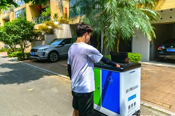 垃圾分类机器人根据居民需要预约“上门收件”。记者 陈暖摄
